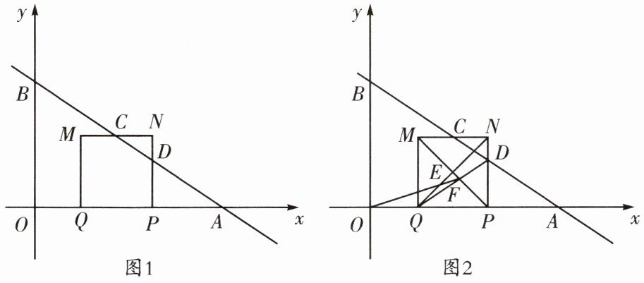 (3)在(2)的条件下,在运动过程中,设正方形PQMN的对角线交于点E,MP与QD交于点F,如图2,求$OF+EN$的最小值.