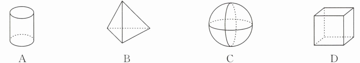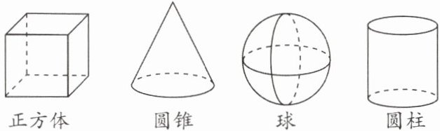 ①球;②正方体;③圆柱;④圆锥;⑤五棱柱。