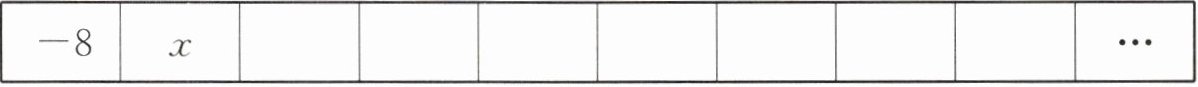 9. (金牛区期末)如表,从左边第一个格子开始向右数,在每一个格子中填入一个有理数,使得其中任意三个相邻格子中的有理数之和,都等于这三格中间那一格的有理数的3倍.已知左边第1格中的有理数为-8,第76格中的有理数为607,则第2格中的有理数x的值为____.