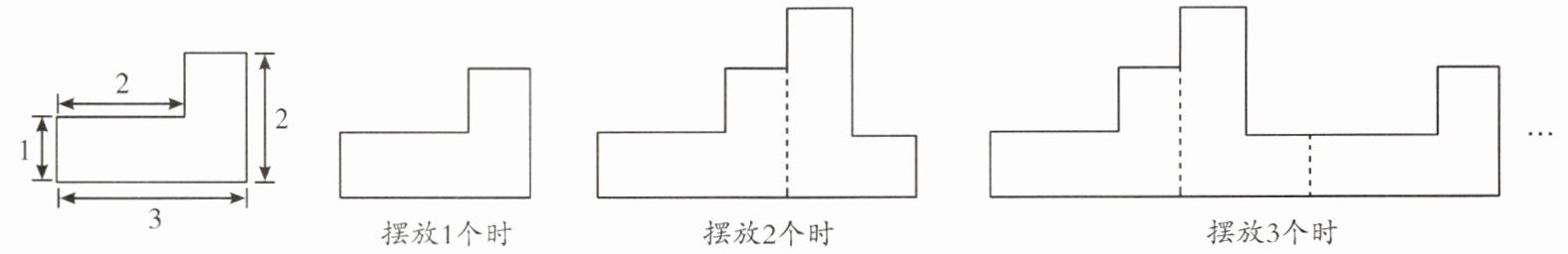 解:观察图形可知,摆放1个时周长为8;摆放2个时周长为12;摆放3个时周长为16。