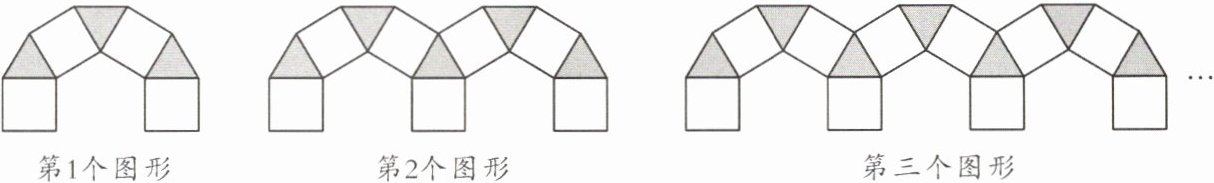 52 【解析】由所给图形可知,第1个图形中正方形卡片的张数为4=1×3+1,等边三角形卡片的张数为3=1×2+1,正方形卡片比等边三角形卡片多的张数为1×3+1-(1×2+1)=1×(3-2);第2个图形中正方形卡片的张数为7=2×3+1,等边三角形卡片的张数为5=2×2+1,正方形卡片比等边三角形卡片多的张数为2×3+1-(2×2+1)=2×(3-2);第3个图形中正方形卡片的张数为10=3×3+1,等边三角形卡片的张数为7=3×2+1,正方形卡片比等边三角形卡片多的张数为3×3+1-(3×2+1)=3×(3-2);……;第n个图形中正方形卡片有(3n+1)张,等边三角形卡片有(2n+1)张,正方形卡片比等边三角形卡片多n张.当n=10时,3n+1+2n+1=5n+2=5×10+2=52(张),即第10个图形中,正方形卡片比等边三角形卡片多10张,且所用两种卡片的总数为52张.