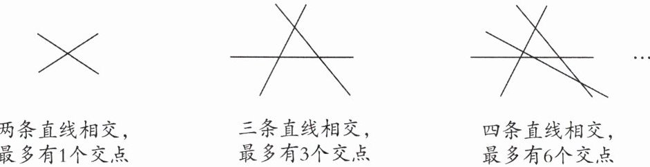 6.(青羊区期末)平面内的两条直线最多有1个交点,三条直线最多有3个交点,四条直线最多有6个交点,…,那么五条直线最多有______个交点.