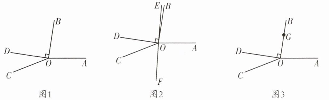 (3)如图3,$G是射线OB$上一点,将线段$OG绕点O以每秒10^{\circ }的速度沿逆时针方向旋转t秒(0\lt t\lt 18)$,当$∠COG= 3∠DOG$时,求此时$t$的值.