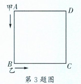 3. (成华区期末)如图,甲、乙两人沿着边长为 60 m 的正方形,按 A→B→C→D→A…的方向行走,甲从点 A 以60 m/min的速度行走,乙从点 B 以 69 m/min 的速度行走,两人同时出发,当乙第一次追上甲时用了_____min.