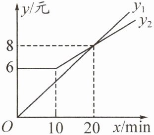 (1)由图象可得,当$x = 20$时,A,B两种品牌收费相同,此时收费8元,故答案为20,8.