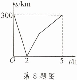 8. (2022·金牛)已知 $ A,B $ 两地是一条直路,甲从 $ A $ 地到 $ B $ 地,乙从 $ B $ 地到 $ A $ 地,两人同时出发,乙先到达目的地,两人之间的距离 $ s(km) $ 与运动时间 $ t(h) $ 的函数关系大致如图所示,下列说法错误的是(