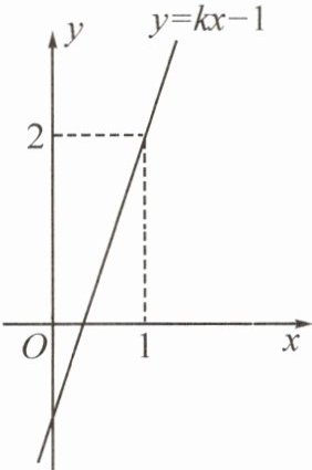 4. (2024·高新)如图,函数$y= kx-1的图象过点(1,2)$,则关于$x的方程kx-1= 2$的解是