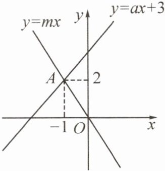 .(2)(2025·青羊)如图,直线$y= ax+3$与直线$y= mx$都经过点$A(-1,2)$,则关于$x,y$的方程组$\left\{\begin{array}{l} y= ax+3,\\ mx-y= 0\end{array} \right. $的解是