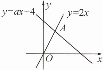 7. (2025·编写)如图,一次函数$y= 2x$和$y= ax+4$的图象相交于点$A(m,3)$,则关于$x,y的方程组\left\{\begin{array}{l} y= 2x,\\ y= ax+4\end{array} \right. $的解为(