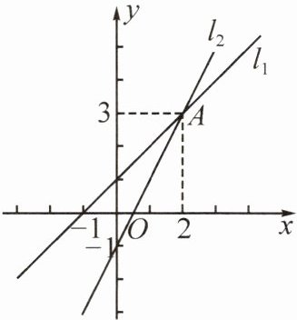 9. (2025·编写)已知两直线$l_{1},l_{2}$的位置关系如图所示,请求出以点$A$的坐标为解的二元一次方程组.