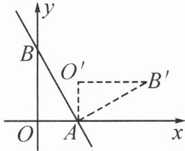 。(2)(2025·编写)如图,直线$y = -\frac{4}{3}x + 4与x$轴、$y轴分别交于A$,$B$两点,把$\triangle AOB绕点A顺时针旋转90^{\circ}后得到\triangle AO'B'$,则点$B'$的坐标是