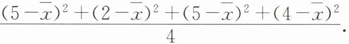 12. (2025·编写)淇淇在计算一组数据的方差时,列得没有化简的算式:$s^{2}= \frac{(5-\overline{x})^{2}+(2-\overline{x})^{2}+(5-\overline{x})^{2}+(4-\overline{x})^{2}}{4}$.