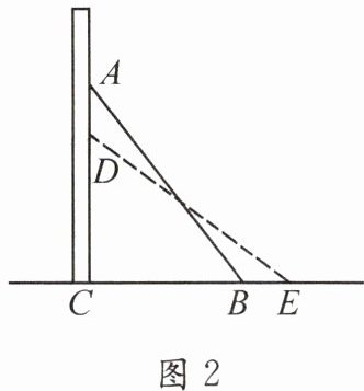 (2)如图2,如果梯子顶端靠墙下移,底端向右移动0.6m至点E处,那么它的顶端A沿墙下移了多少米?