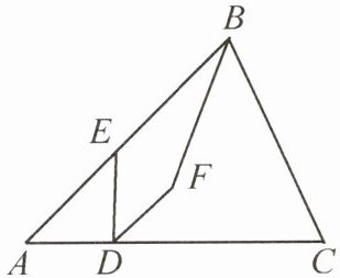 15. (2024·青羊) 如图,在等腰 $ \triangle ABC $ 中,$ AB = AC $,$ \angle A = 45^\circ $,$ D $,$ E $ 两点分别是边 $ AC $,$ AB $ 上的动点,且 $ BE = 2AD $,将线段 $ DE $ 绕点 $ D $ 顺时针旋转 $ 45^\circ $ 得到线段 $ DF $,连接 $ BF $. 若 $ BC = 6 $,求 $ BF^2 $ 的最小值.