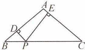 15. (2025·编写)如图,在$\triangle ABC$中,$AB= AC= 5$,$BC= 8$,$P是BC$边上的动点,过点$P分别作PD⊥AB于点D$,$PE⊥AC于点E$,求$PD+PE$的长,并判定$PD+PE$的长是不是有理数.