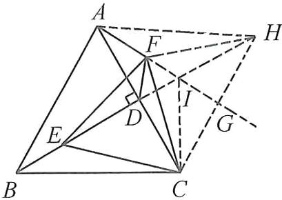 如图,过点C作CG⊥AF,交AF的延长线于点G,延长CG到H,使得GH = CG,连接AH,DH,DH与AG交于点I,连接CI,FH,则∠ACG = 60°,CG = GH = $\frac{1}{2}$AC = 3。