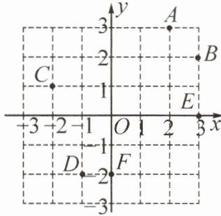 (1)【解】观察图,得 $A(2,3)$,$B(3,2)$,$C(-2,1)$,$D(-1,-2)$,$E(3,0)$,$F(0,-2)$,$O(0,0)$。