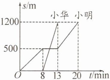 3. (2025·编写)小明和小华是同班同学,也是邻居,某日早晨,小明$7:00$出发去学校,走了一段路后,在途中停下吃了早饭,后来发现上学时间快到了,就跑步到学校;小华离家后直接乘公交车到了学校。如图是他们从家到学校已走的路程$s(m)和小明所用时间t(min)$的关系图,则下列说法中正确的有