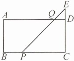14. (2025·编写)如图,在长方形$ABCD$中,$AB = 4$,$BC = 7$,$P是BC边上与点B$不重合的动点,过点$P的直线交CD的延长线于点E$,交$AD于点Q$(点$Q与点D$不重合),且$\angle EPC = 45^{\circ}$。设$BP = x$,梯形$ABPQ的面积为y$,求$y与x$之间的函数关系式,并求出自变量$x$的取值范围。