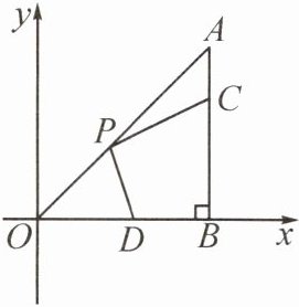 14. (2025·编写) 如图,在 $ \text{Rt} \triangle ABO $ 中, $ \angle OBA = 90^\circ $, $ A(4, 4) $,点 $ C $ 在边 $ AB $ 上,且 $ \frac{AC}{CB} = \frac{1}{3} $, $ D $ 为 $ OB $ 的中点, $ P $ 为边 $ OA $ 上的动点,当点 $ P $ 在 $ OA $ 上移动时,求使四边形 $ PDBC $ 周长最小的点 $ P $ 的坐标。