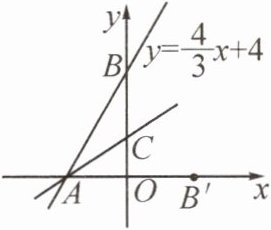 11. (2024·南京)如图,一次函数 $ y = \frac{4}{3}x + 4 $ 的图象分别与 $ x $ 轴、$ y $ 轴交于点 $ A $,$ B $,点 $ C $ 在 $ y $ 轴的正半轴上,若点 $ B $ 关于直线 $ AC $ 的对称点 $ B' $ 恰好落在 $ x $ 轴上,则直线 $ AC $ 所对应的函数表达式为______。