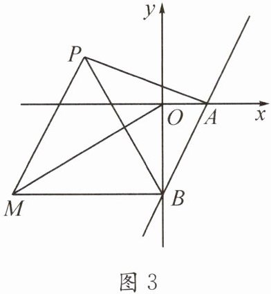 - (3) 如图 3,点 $ P $ 为第二象限内的一点,连接 $ BP $,以 $ BP $ 为边在 $ BP $ 的左侧作等边三角形 $ PBM $,当 $ \angle MOB = 60^{\circ} $,$ OM = 8 + 4\sqrt{3} $ 时,求线段 $ PA $ 的长。