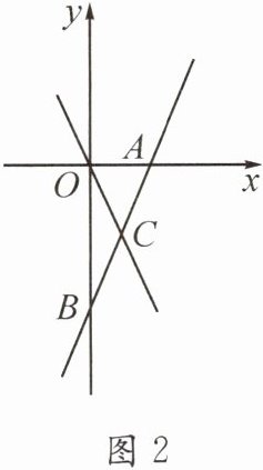 - (2) 如图 2,作直线 $ OC $,点 $ P $ 在直线 $ OC $ 上,当 $ \triangle PBC $ 的面积为 $ \triangle BOC $ 面积的 2 倍时,求点 $ P $ 的坐标;