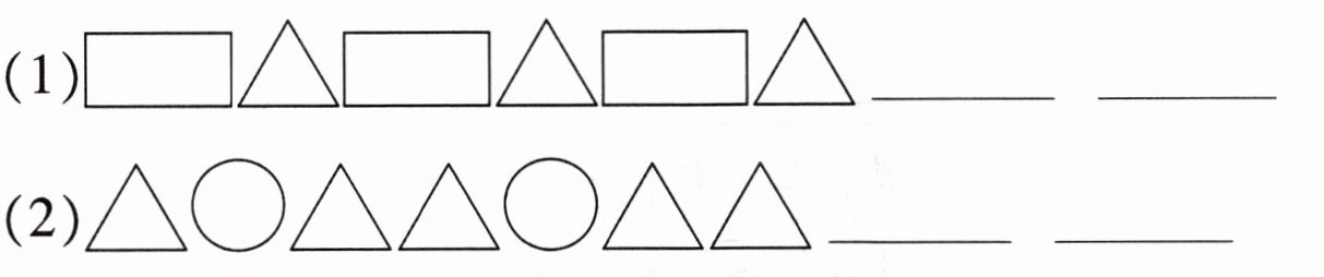 (1) 观察发现规律是“长方形、三角形”依次循环,所以接着画长方形、三角形。