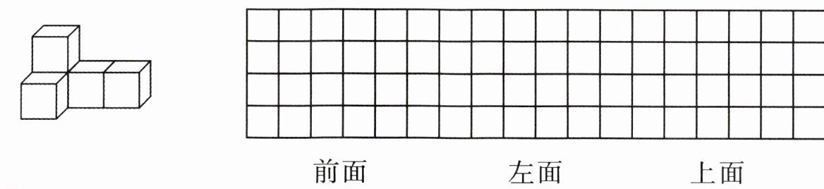 1. 用5个正方体搭成一个立体图形,分别画出从前面、左面、上面看到的立体图形的形状。