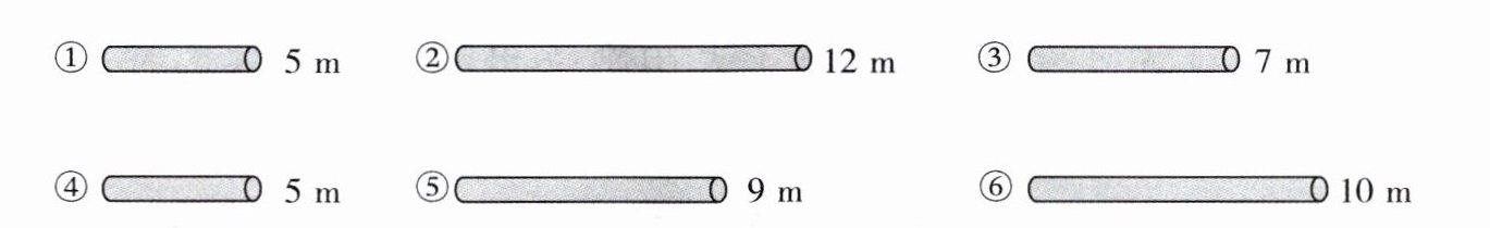 2. 以前农村建造房屋常见的房顶结构是等腰三角形的“人字梁”。它的主要外观是由3根木料组成。下面有6根木料,请你想一想,选一选。(填序号)