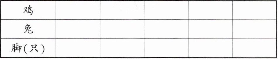 2. 笼子里有鸡与兔共6只,一共20只脚,鸡与兔各有多少只?按顺序列表试一试,鸡有(