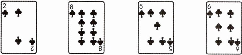 2. 同学们,你们玩过扑克牌游戏“24点”吗?它是一种填运算符号的游戏,就是运用加、减、乘、除四种运算方法(也可用括号)将4张牌上的数字进行计算,结果必须为24。下面自己试试吧!