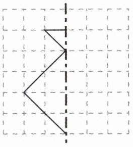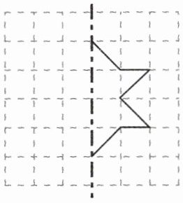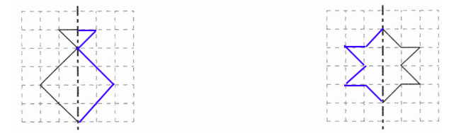 找出第二个图形关键点(顶部、折角处、底部的点),依据对称轴确定对称点,依次连接对称点,得到类似箭头形状关于竖直线对称的完整图形