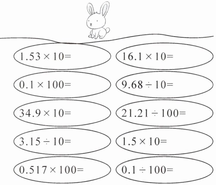 - $0.1×100$:一个数乘以$100$,小数点向右移动两位,$0.1×100 = 10$。