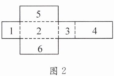 2. 图2是一个长方体的展开图,其中1的对面是(