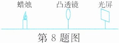 8. 小金用蜡烛、凸透镜和光屏做“探究凸透镜成像规律”的实验,装置如图所示。