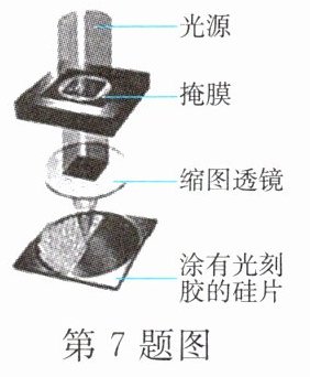 7. 哈工大宣布突破EUV光刻机关键技术。光刻技术是利用缩图透镜将绘制在掩膜上的电路图通过光源投射到涂有光刻胶的硅片上,从而制造出集成电路的方法,其工作原理如图所示。若图示中掩膜上的电路图恰好在硅片上成清晰缩小的像,则该像是