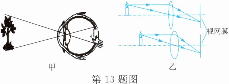 13. 一架照相机很像人类的眼睛。眼睛与照相机的不同之处:人的眼睛是通过调节