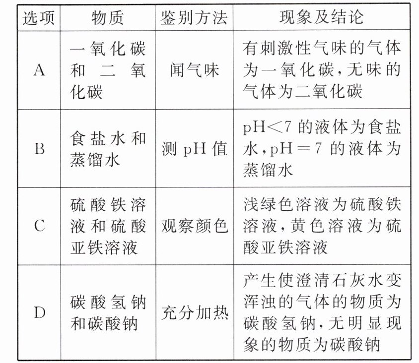 5. 下列各组物质的鉴别方法、现象及结论均正确的是(