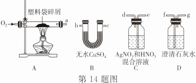 14. 日常生活中使用的塑料袋有用聚乙烯制成的,也有用聚氯乙烯制成的。小明同学听说包装食品的塑料袋应该是前者而不是后者,便设计了一个实验方案,用平常在超市买东西时带回来的塑料袋进行探究,以验证其成分。