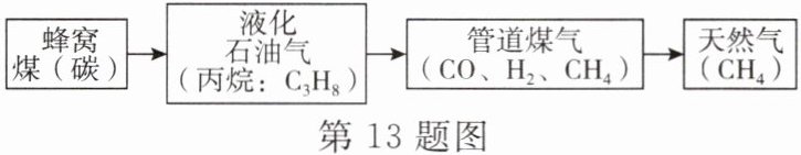 13. 某项目化学习小组在调查当地燃料的来源和使用情况后,画出了当地的燃料使用的发展历程(括号内为燃料的主要成分),如图所示。