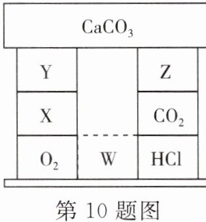 10. [模型建构]如图所示,同学们通过搭积木的游戏来建立几种物质之间的联系。X、Y、Z都是由2种或3种元素组成的常见化合物。游戏规则:下面物质可以转化成相邻的上面物质。