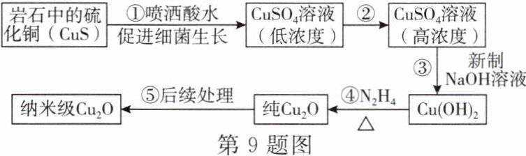 9. 纳米级$Cu_{2}O$因具有优良的催化性能备受关注。某兴趣小组在老师的带领下开展纳米级$Cu_{2}O$的制备研究,其流程如图所示。