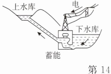 14. 抽水蓄能电站能合理利用电能,其工作原理如图所示。用电低谷时(如深夜),电站利用电网多余电能把水从下水库抽到上水库中储存起来;用电高峰时,再利用上水库中的水发电。