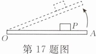 17. 如图所示,重物P放在一水平长木板OA上,将长木板绕O端匀速缓慢转动一定角度,重物P相对于长木板始终保持静止。匀速转动过程中重物P受到的支持力将