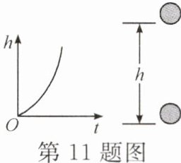 11. 如图所示是一小球从某处由静止下落过程中路程h与时间t的关系图。下列选项中,描述重力对该球做功大小与时间关系正确的图像是 (