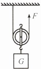 (2)在“动滑轮”实验中,小宁通过如图所示装置进行实验,得到结论:使用动滑轮匀速提升物体,竖直向上的拉力F小于物重G。小宁思考后认为,即使不计摩擦和绳重,上述结论要成立,物重G和动滑轮重$G_{动}$之间也必须满足一定条件。请你说出这一条件,并予以证明。
