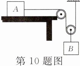 10. 如图所示,物体A、B分别重20N、10N,滑轮和绳子的重忽略不计,滑轮摩擦不计,此时物体A在水平面上向右做匀速直线运动,若用力F向左拉物体A,使物体A向左做匀速直线运动,则(
