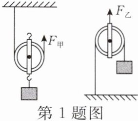 1. 小乐用如图所示的两种方式竖直匀速提升某物体,且都使物体上升了2m。已知物体重200N,滑轮重40N,提升时的拉力分别为$F_{甲}和F_{乙}$。若不计绳重和摩擦,则在提升过程中(