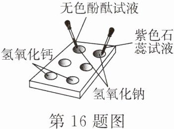 16. 如图所示为某学习小组在白色点滴板上进行的有关“溶液的酸碱性”的探究实验。